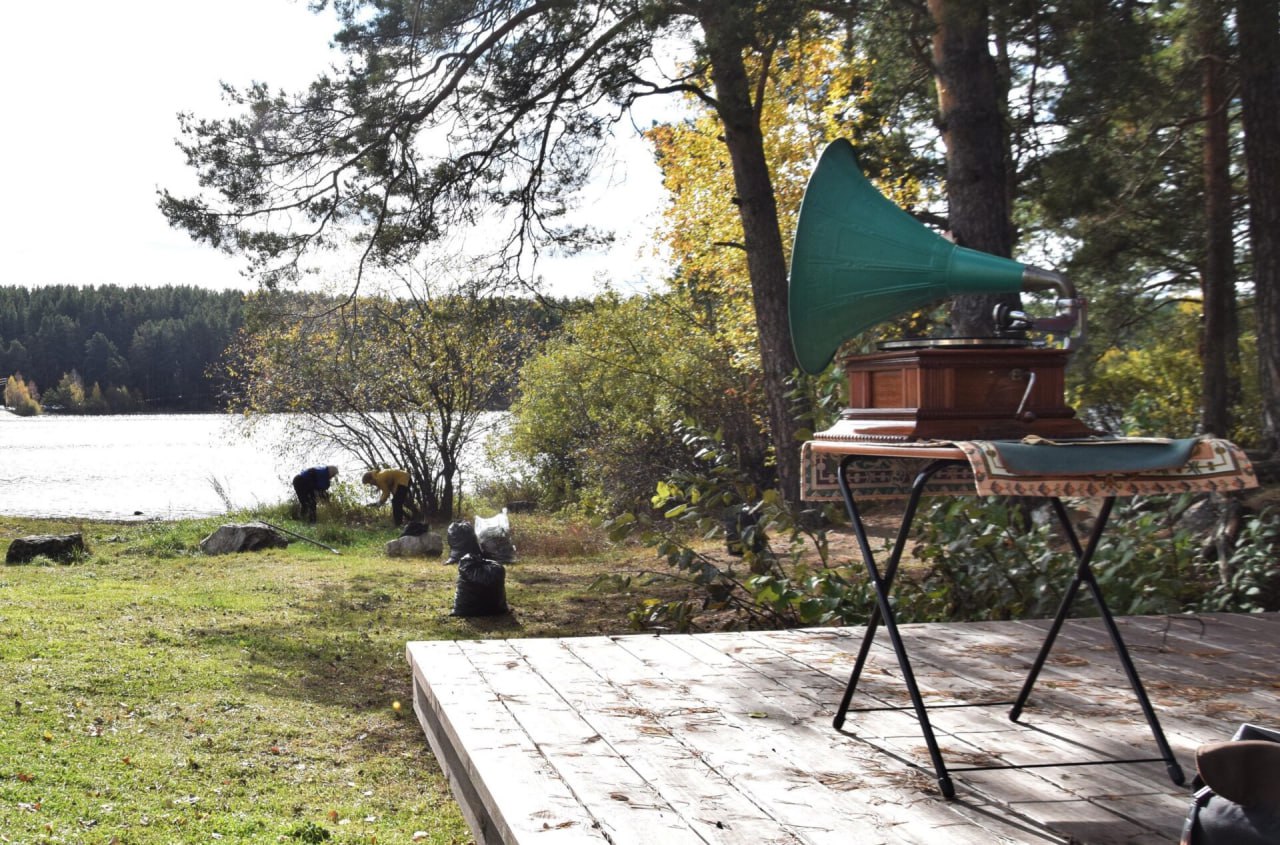 После работы для всех участников было организовано угощение — горячий плов. На месте проведения субботника также играл советский граммофон.