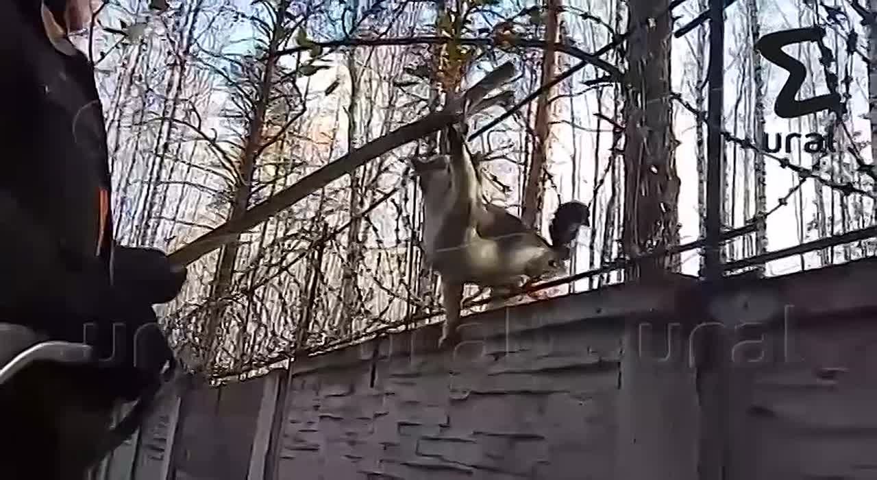 Кота, застрявшего в колючей проволоке, спасли прохожие на "7 ключах" в Екате.