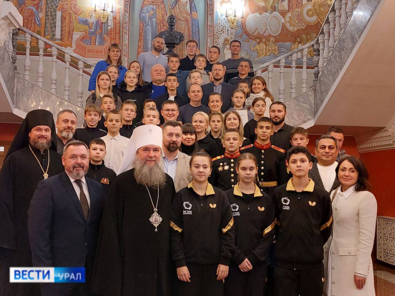 Ребята встретились с Митрополитом Евгением, посетили молебен и получили грамоты и памятные подарки в дисциплинах по самбо, баскетболу, футзалу, настольному теннису и шахматам.