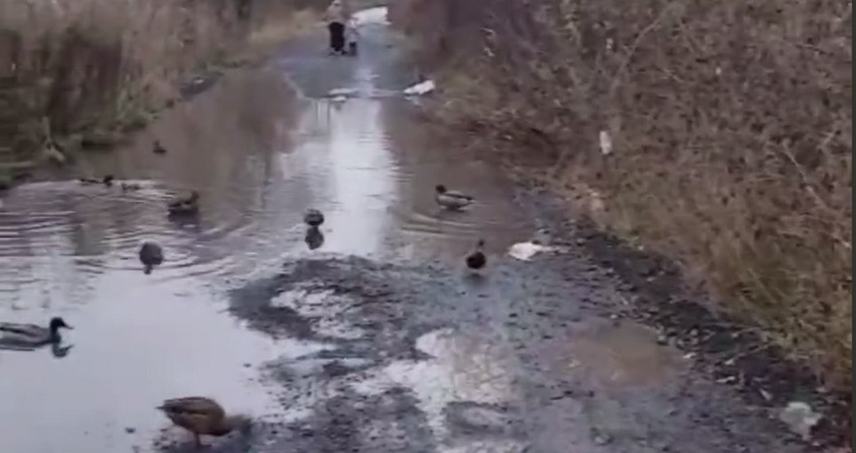 Утки рады, люди в пакетах: в Екатеринбурге месяц не могут устранить лужу у подъезда