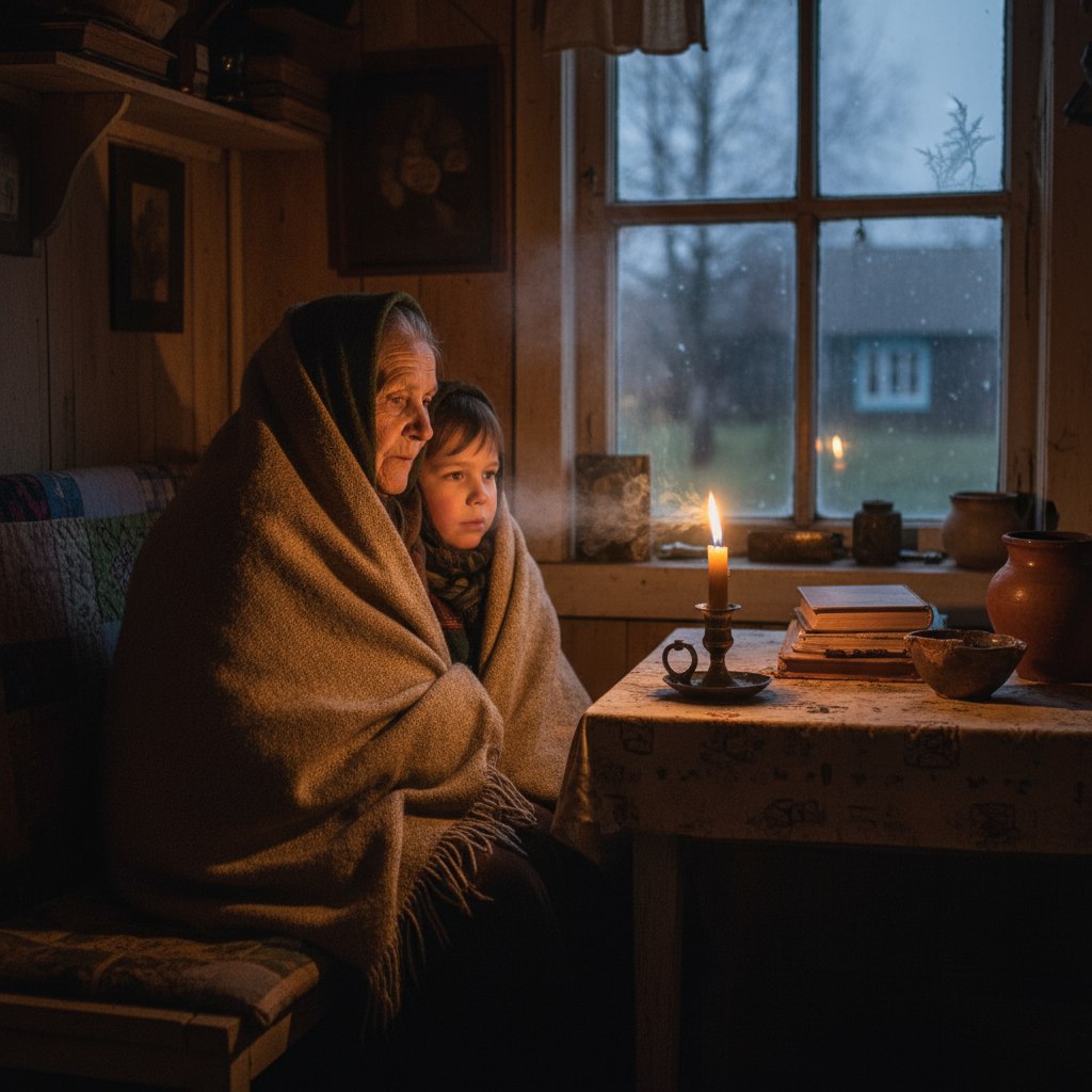 - Дети делают уроки при свечах