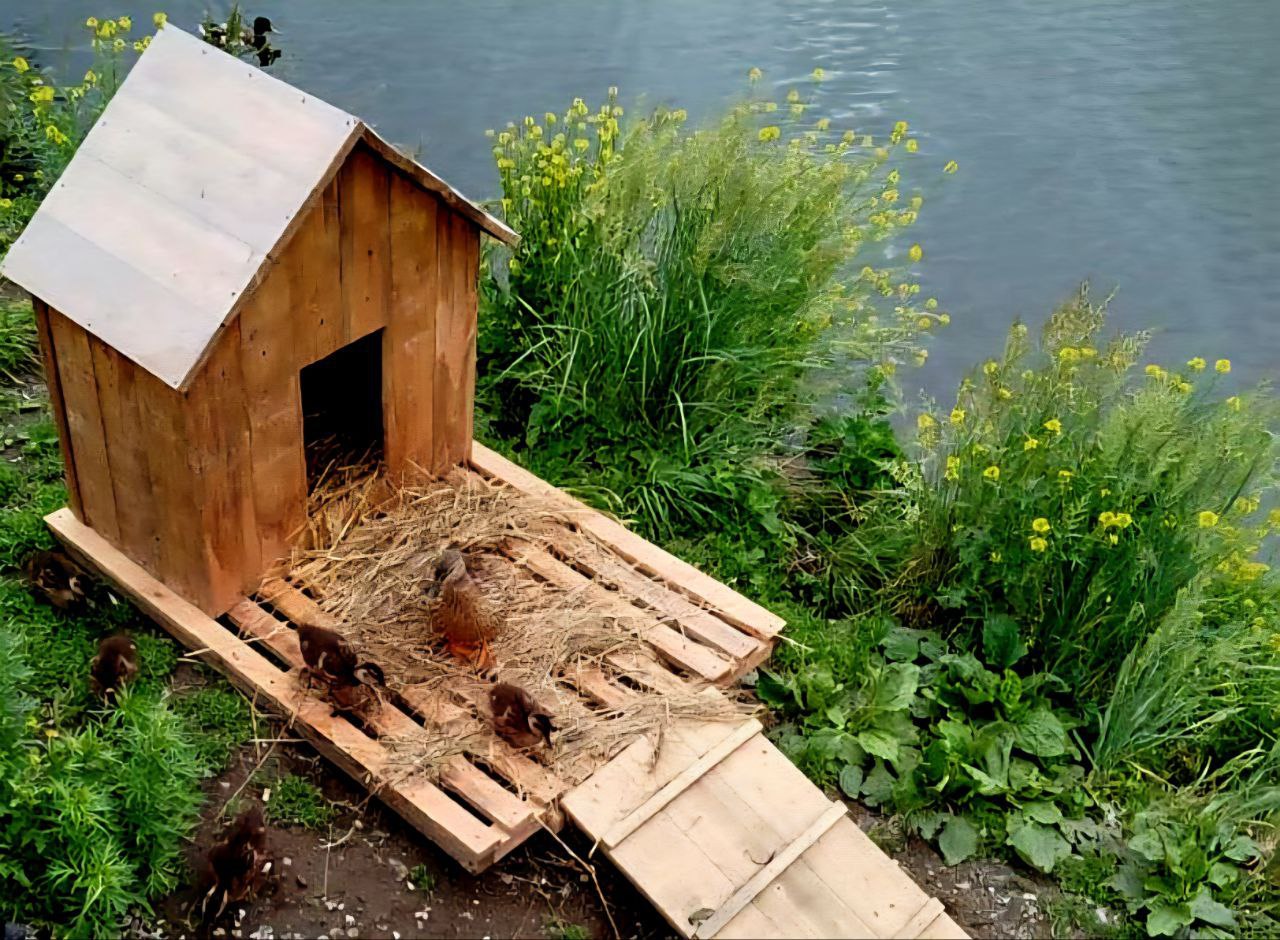 В домиках из экологически чистых материалов, построенных железнодорожниками, утки смогут укрыться от осадков и хищников, отдохнуть в период выведения птенцов.