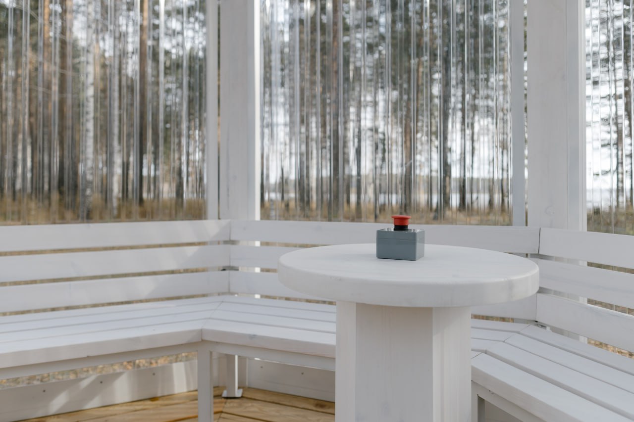 Зайдя внутрь, можно пообщаться с друзьями, зарядить телефон или просто отдохнуть. На столике расположен специальный переключатель. Воспользовавшись им, можно услышать истории жителей или гостей Рефтинского.