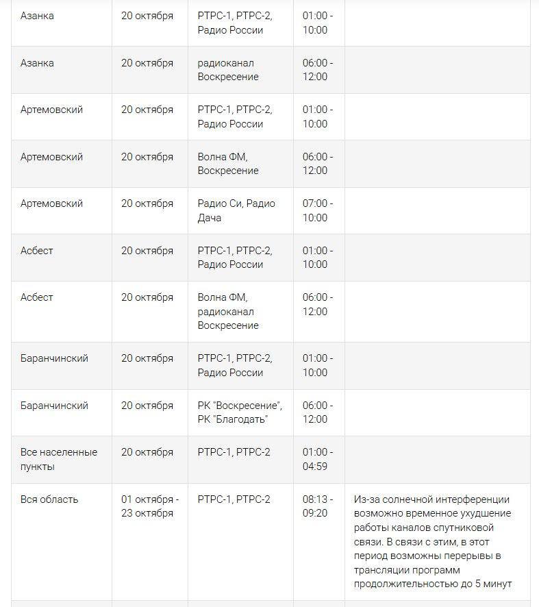 Сигнал будут прерывать на время с 20 по 26 октября. Отключения связаны с плановыми техническими работами.