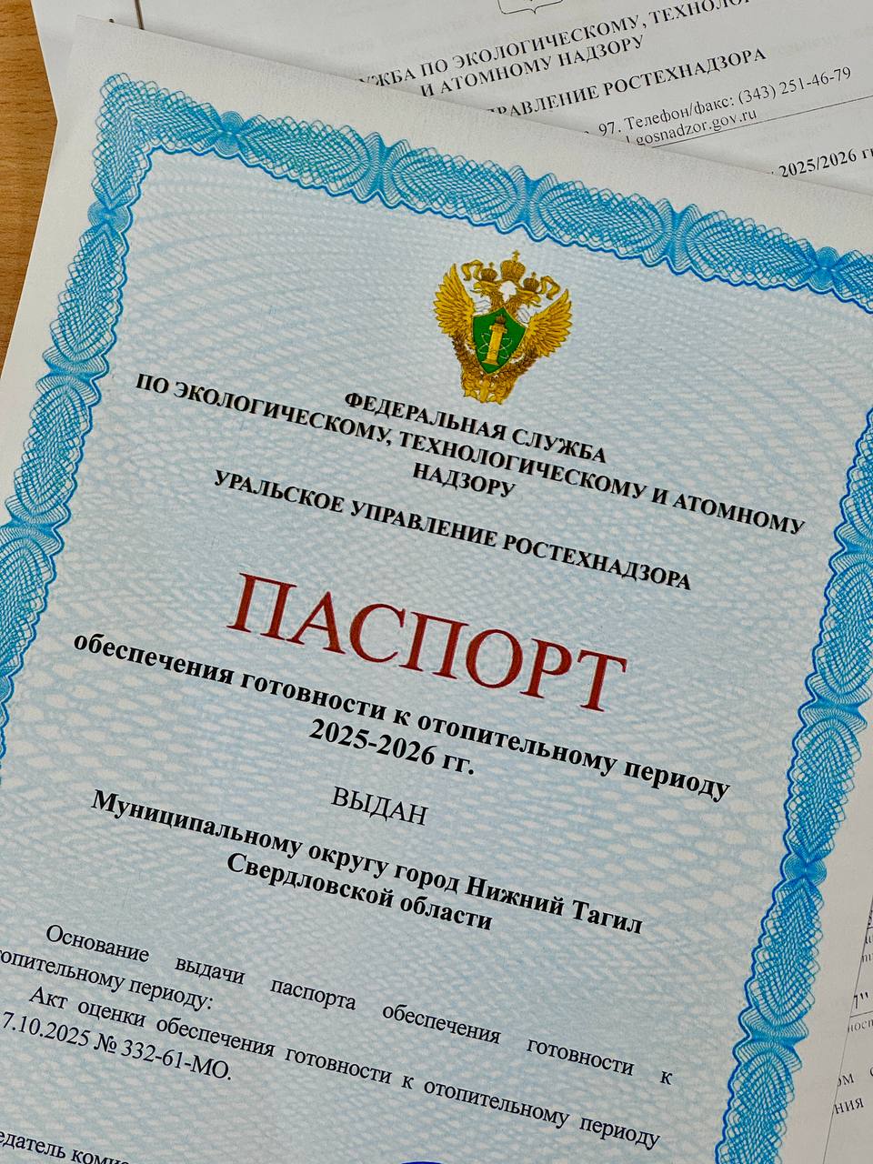 Нижний Тагил получил паспорт готовности к отопительному периоду 2025–2026 годов от Ростехнадзора.
