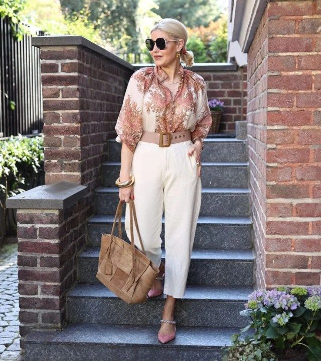 - Пудровая блузка с рубашечным воротником и рукавами 3/4 — великолепный выбор, который освежает и омолаживает. Такая модель отлично смотрится как навыпуск, так и заправленной за пояс. Сочетайте её с черными брюками прямого кроя для создания стильного образа.