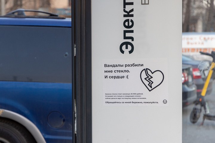 Вандалы оставляют горожан без остановок, даже там, где установлены новые конструкции. Страдают от этого даже сами остановки. Во всяком случае, именно так теперь на них и написано, - сообщает телеграм-канал «Екатеринбург. Главное».