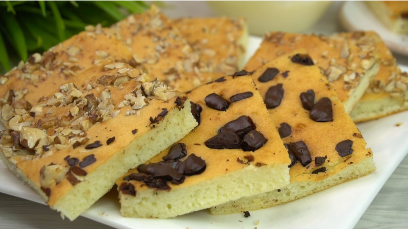 Когда оладьи готовы, их необходимо достать из духовки, разрезать на порционные квадраты. Эти воздушные изделия гораздо больше похожи на панкейки, чем на традиционные оладьи, что делает их особенно привлекательными. Подавайте к ним ванильный соус, джем или сгущенное молоко — и вы точно удивите гостей своим кулинарным талантом.