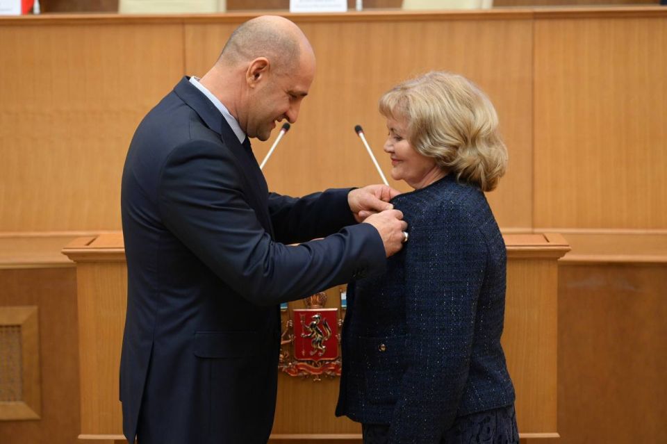 Денис Паслер поздравил Людмилу Бабушкину с вручением Ордена Почёта