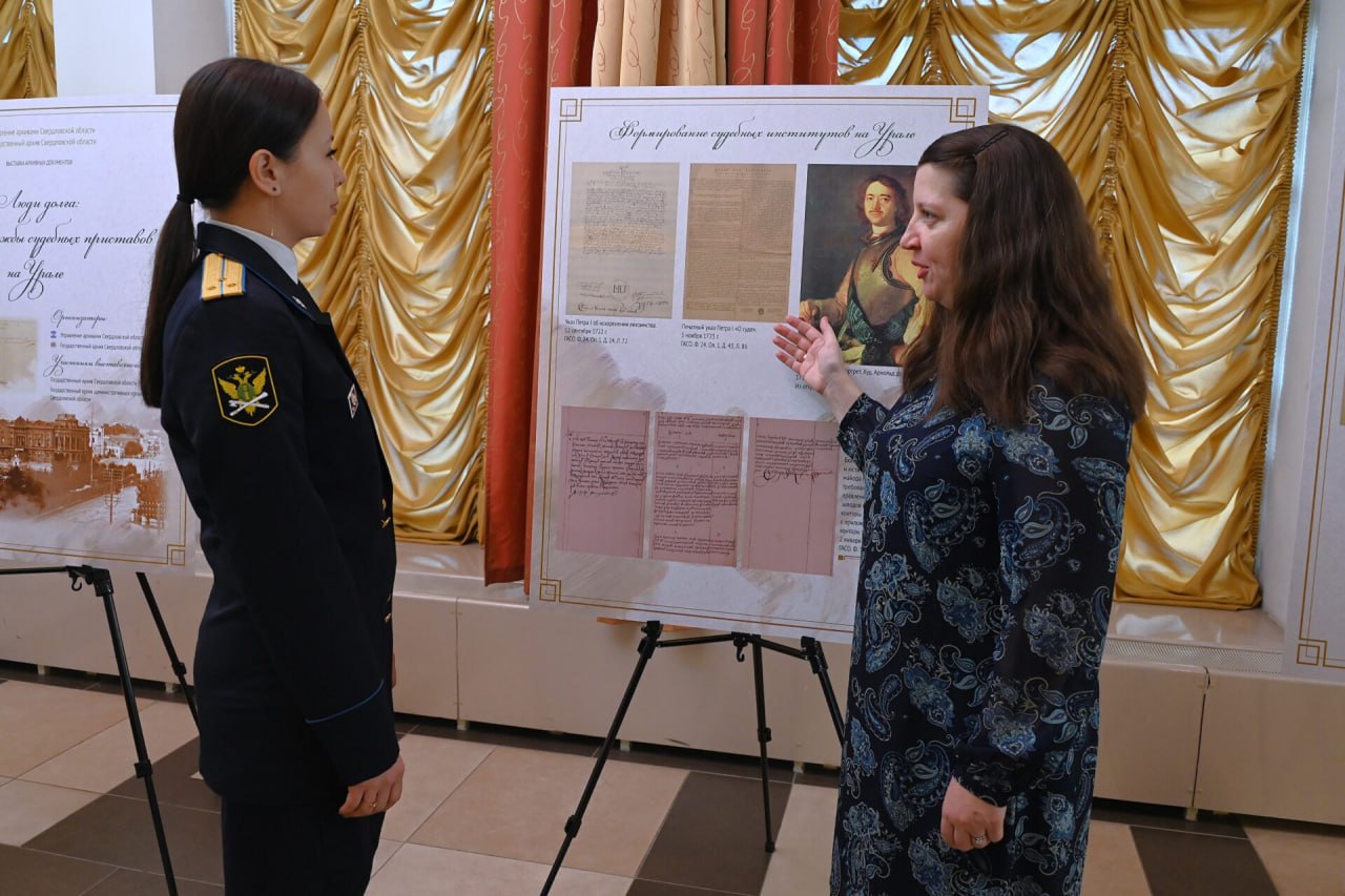 На выставке представлены документы Государственного архива Свердловской области и Государственного архива административных органов Свердловской области, через которые зритель узнает о формировании службы судебных приставов. На самой экспозиции можно ознакомиться с копиями наиболее ранних документов по истории судебной власти на Урале, в том числе с указом Петра I об искоренении лихоимства. В состав выставки вошли документы, демонстрирующие практику имущественных взысканий на Урале XVIII – первой половины XIX века – описи имущества, челобитные, решение имущественных споров, документы об учреждении Екатеринбургской полиции и Екатеринбургской городской управы благочиния.