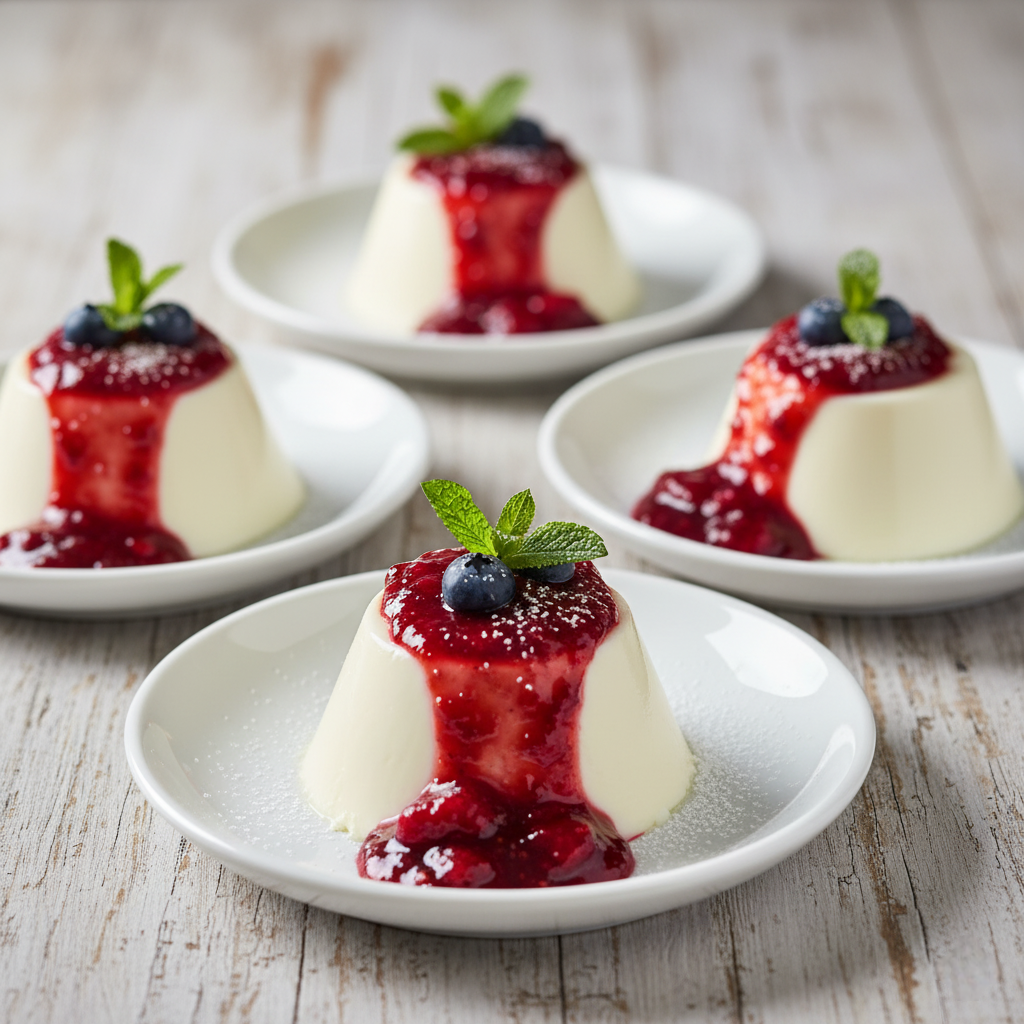 Теперь, когда панна-котта готова, добавьте к ней свежий ягодный кули — именно он придаст завершенность этому десерту в стиле "итальянское наслаждение".