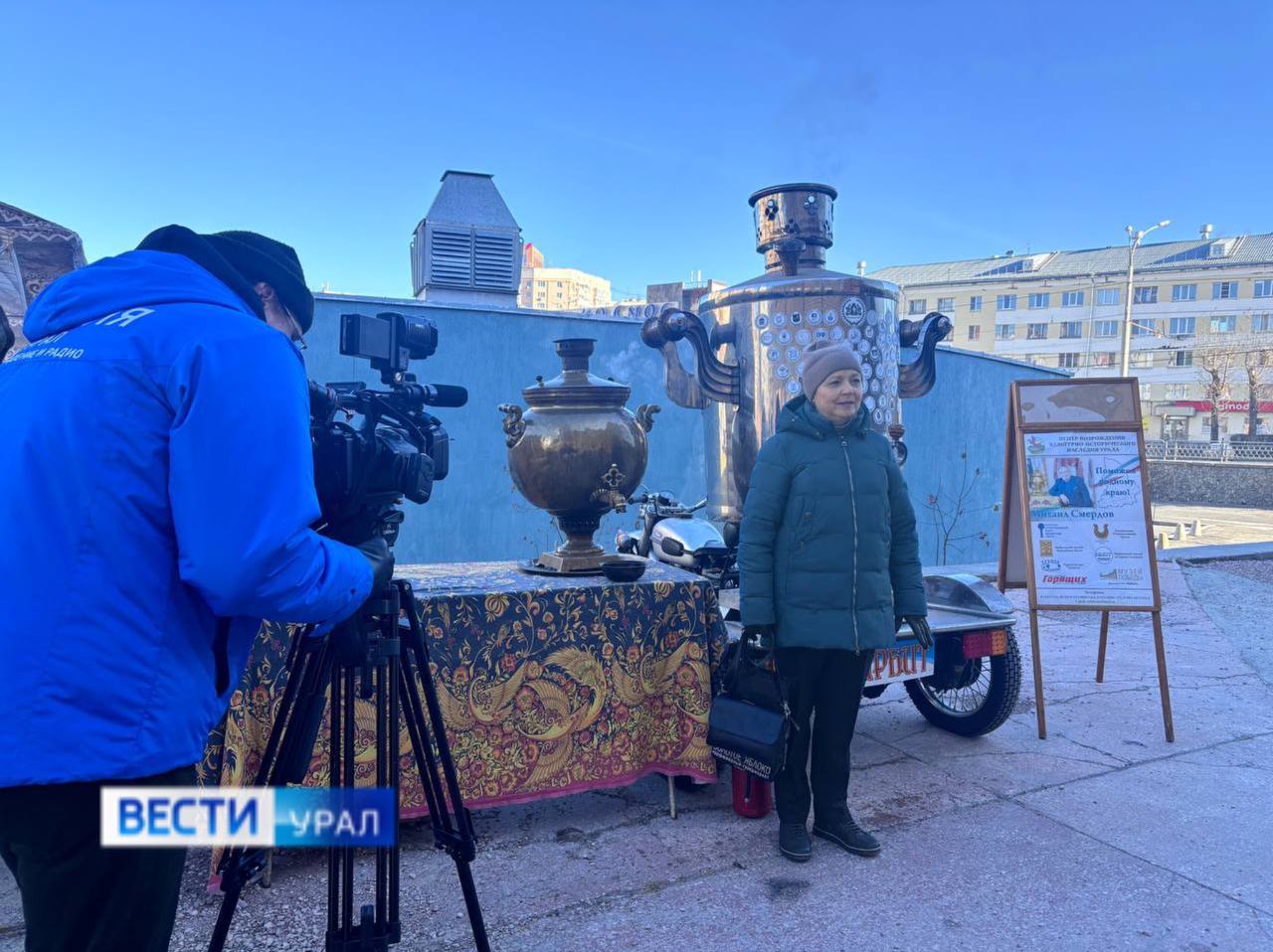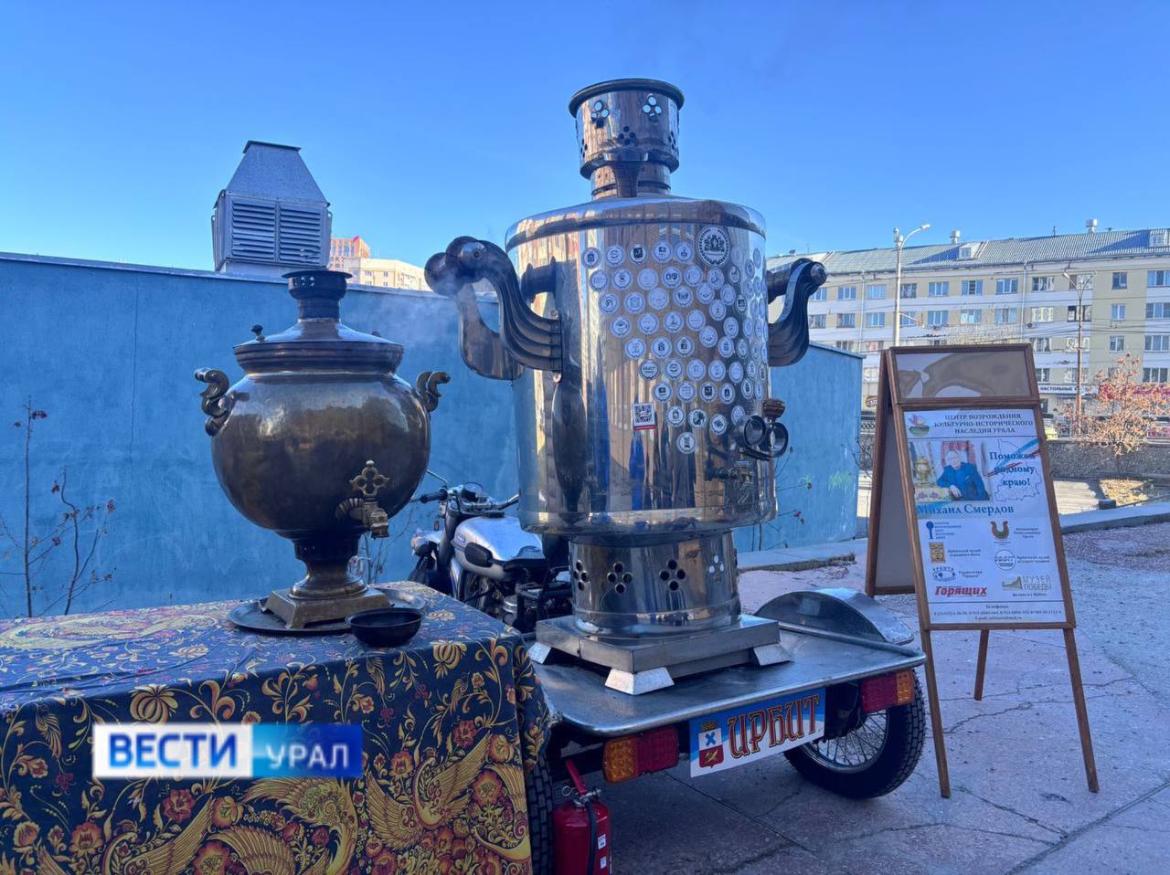 В Екатеринбурге в честь Дня народного единства проходит народный праздник. И самовар здесь - символ гостеприимства. Специально на народные гуляния из Ирбита привезли большой самовар на 450 литров.