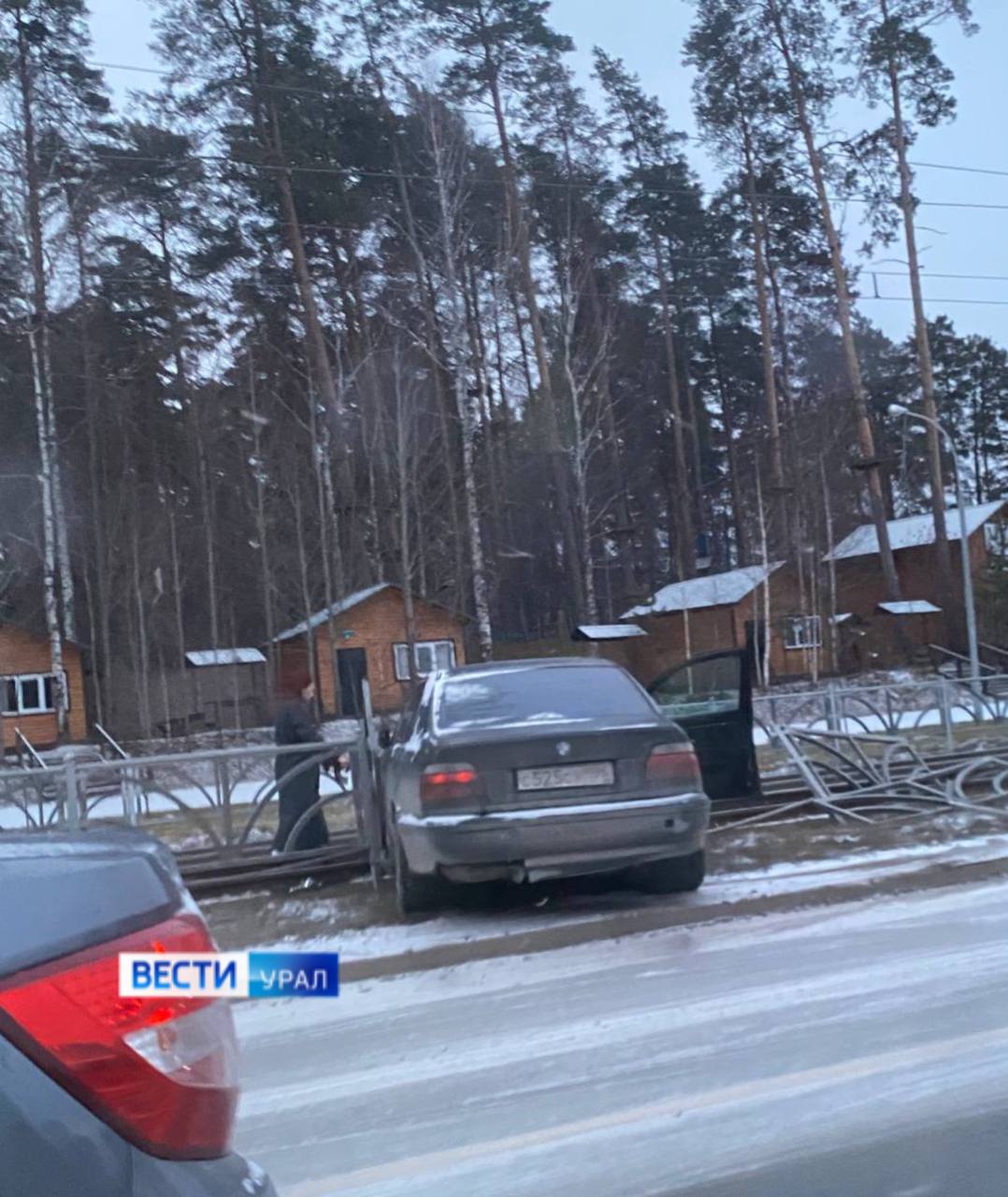 Легковушка снесла дорожное ограждение и вылетела на рельсы, перегородив движение трамваев. Информации о пострадавших нет.