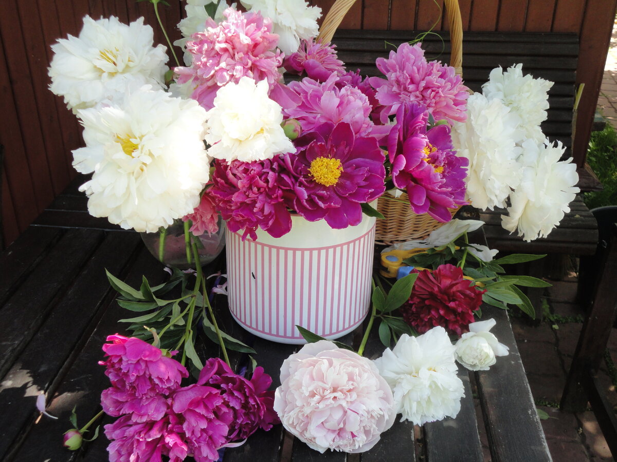 Пионы могут иметь самые разнообразные цветовые оттенки: от белоснежных до ярко-красных и нежно-розовых. К примеру, белые сорта 'Gladys Hodson' и 'Duchesse de Nemours' приятно удивляют своей пышной формой и стойкостью. А для любителей насыщенных красок стоит обратить внимание на такие сорта, как 'Red Grace' и 'Henry Bockstoce', которые впечатляют своими яркими, глубокими оттенками.