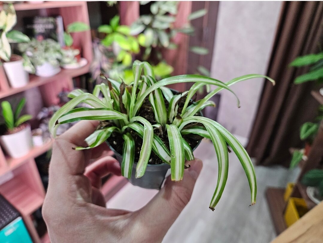 На прилавках магазинов, особенно в акциях, попадаются весьма интересные экземпляры растений, и недавно один из таких оказался в Ашане. Полосатый хлорофитум, которому явно требовалась помощь, привлек внимание не только своими листиками, но и проблемами с корнями: засохшие кончики листьев выдавали сигнал о том, что растению нелегко.