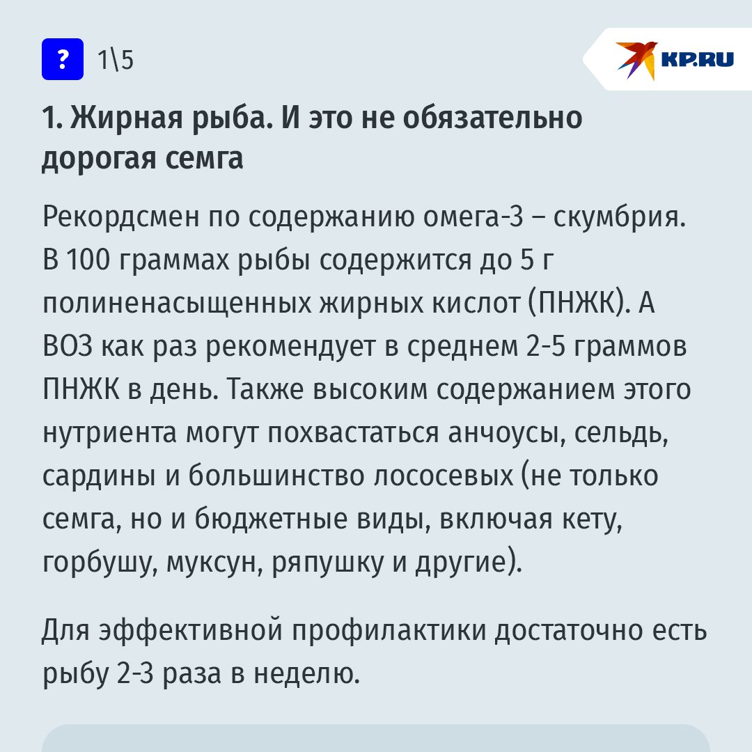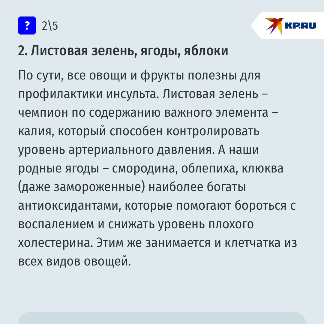 Вместе с экспертами мы составили список главных продуктов, важных для профилактики инсульта. Подробности на карточках