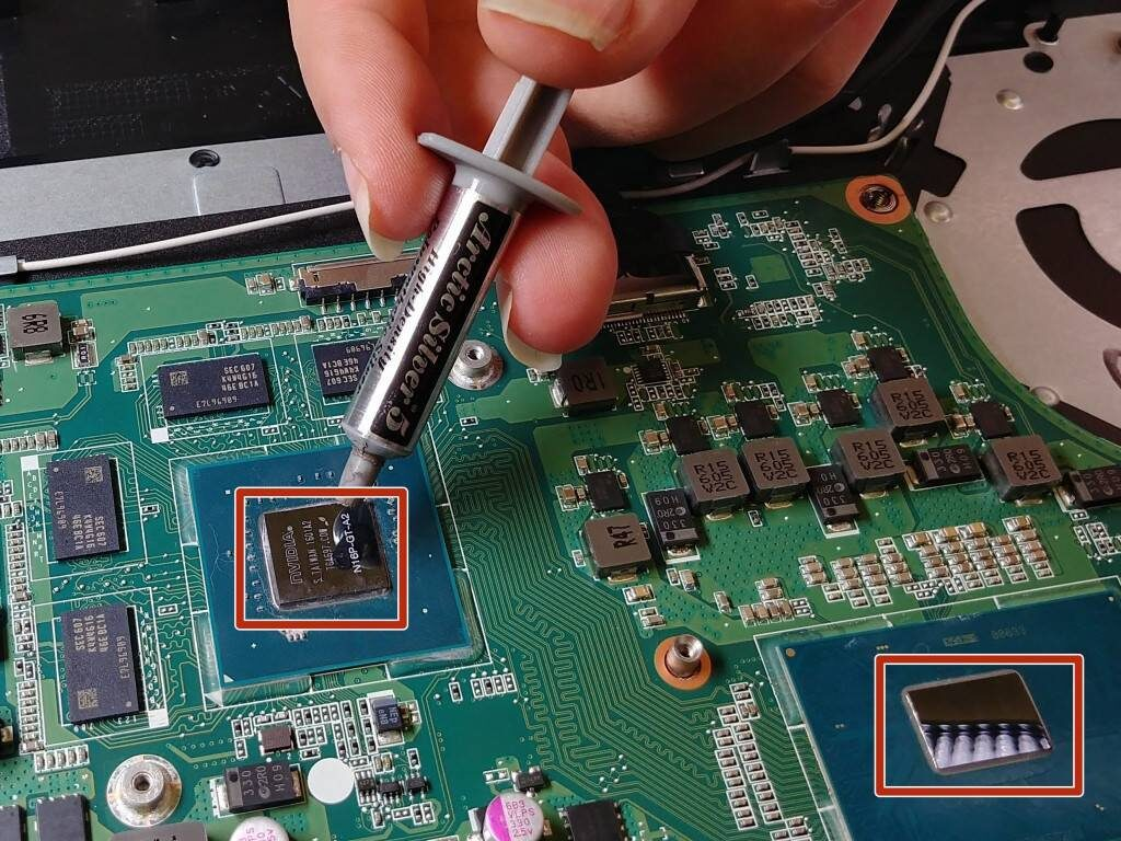 Обслуживание устройств с жидким металлом требует особой осторожности. Первым делом следует отключить аккумулятор, чтобы избежать проблем при работе с платой. Сложность заключается в аккуратном снятии охлаждающей системы, так как на герметике может образоваться сильная связь между теплотрубкой и материнской платой.