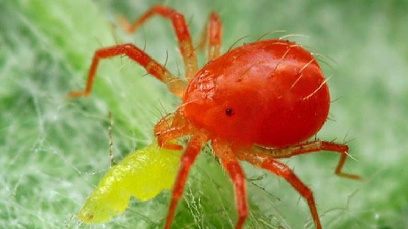Паутинный клещ – наименьший из известных вредителей среди 1300 его видов, его размеры составляют всего 0,4-0,6 мм, что затрудняет его заметность. Это делает раннее обнаружение проблемы практически невозможным. Живя до 40 дней и размножаясь при температуре 26-30°C, клещ может быстро распространиться по всем растениям в теплице или на участке. Он питается соком растений, оставляя после себя слабые, пересохшие листья с миниатюрными пробелами.