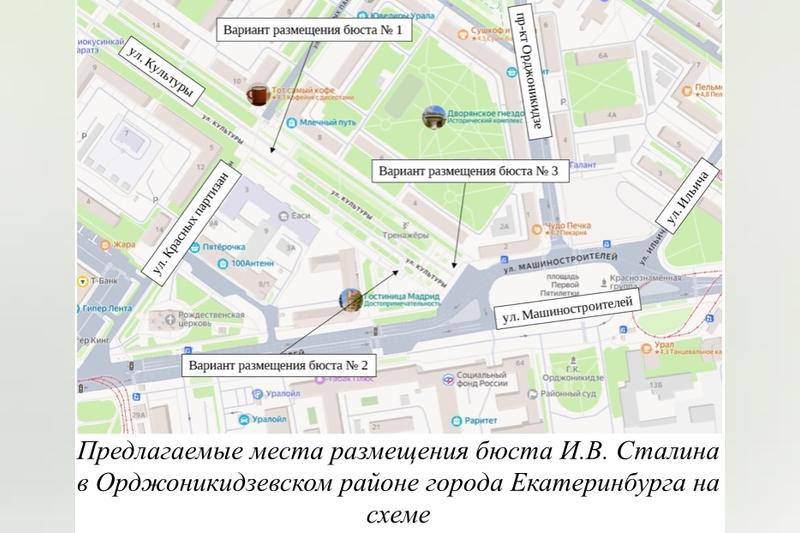 Общественники предложили несколько локаций: лощадь перед Окружным домом офицеров и бульвар Культуры на Уралмаше или возле гостиницы «Мадрид». Предложение будет обсуждаться завтра на заседании комиссии по топонимике, пишет ЕАН.