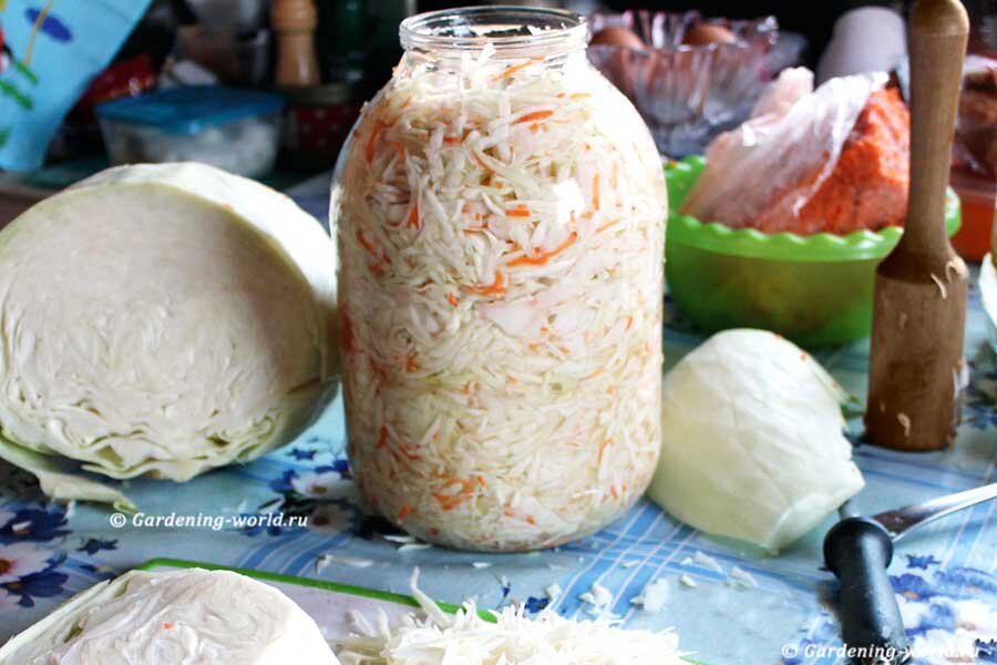 Для квашения лучше всего подойдет большая эмалированная кастрюля. На дно помещают чистые капустные листья, затем утрамбовывают каждую партию нарезанной капусты с морковью и накрывают сверху чистым листом капусты. Сверху ставят груз, например, банку с водой, чтобы капуста дала сок.