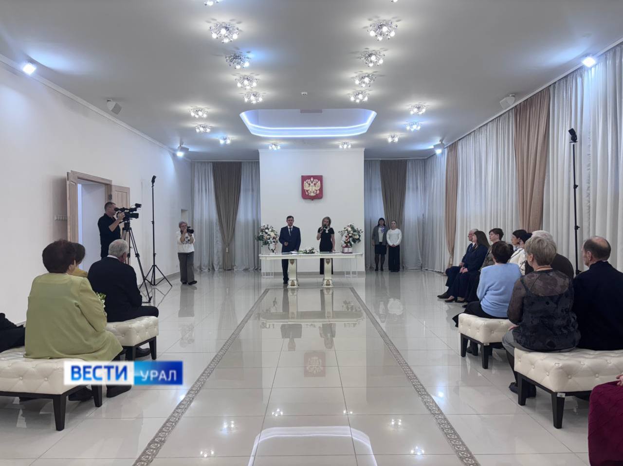 В Екатеринбурге прошла церемония вручения знаков отличия Свердловской области «Совет да любовь». Их получили 5 семей-юбиляров, проживших в браке более 50 лет.