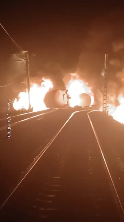 Движение на ж/д перегоне остановлено, на место едут пожарные. О пострадавших не сообщалось.