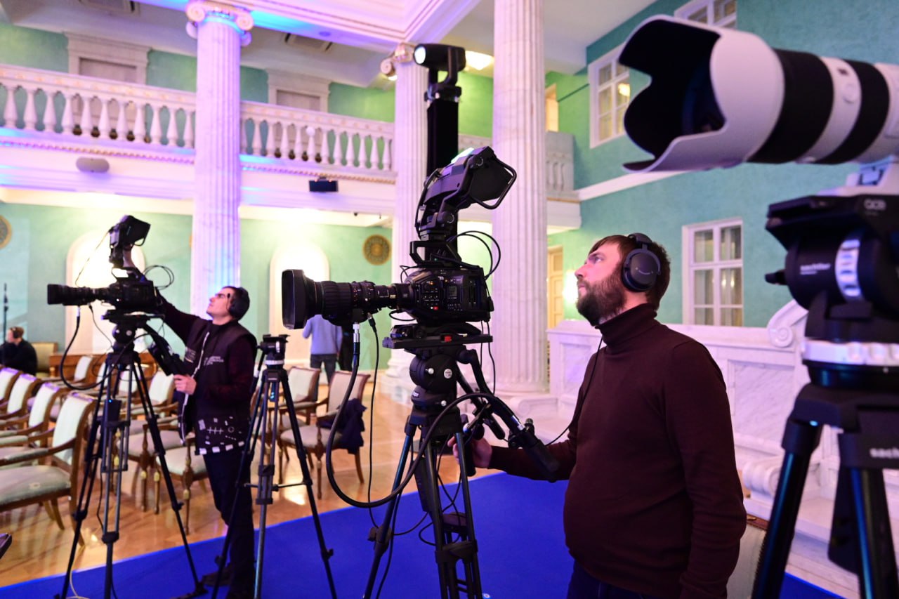 В зале постепенно собираются журналисты, операторы заканчивают настраивать оборудование.