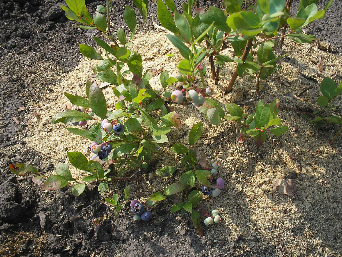 Уход за голубикой на протяжении последующих лет сводится к контролю уровня влажности и удалению сорняков. Удобрять растения стоит сочетанием минеральных удобрений с высоким содержанием азота, что способствует здоровому росту. Калийные удобрения также важны — они лучше всего вносятся в виде сульфата калия.