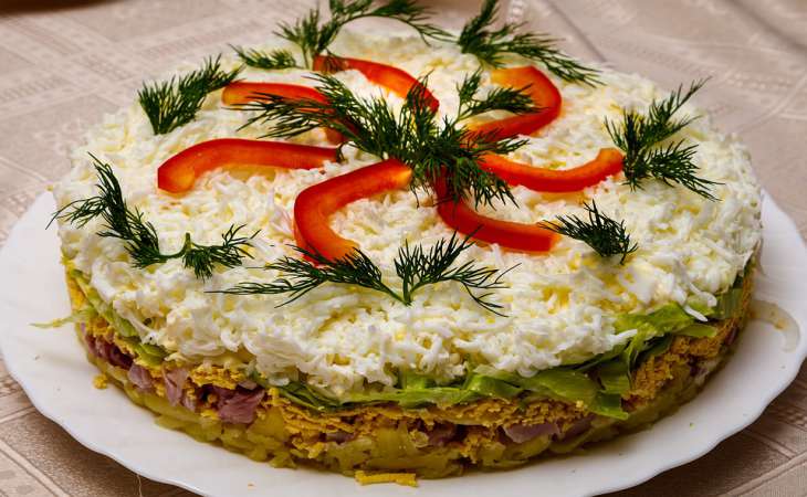 Во всем остальном творчество только приветствуется. Рыба для салата может быть отварной, соленой или консервированной. А можно использовать вместо нее печень трески, молоки или крабовые палочки. Также встречаются рецепты этого салата на основе икры или сыра.