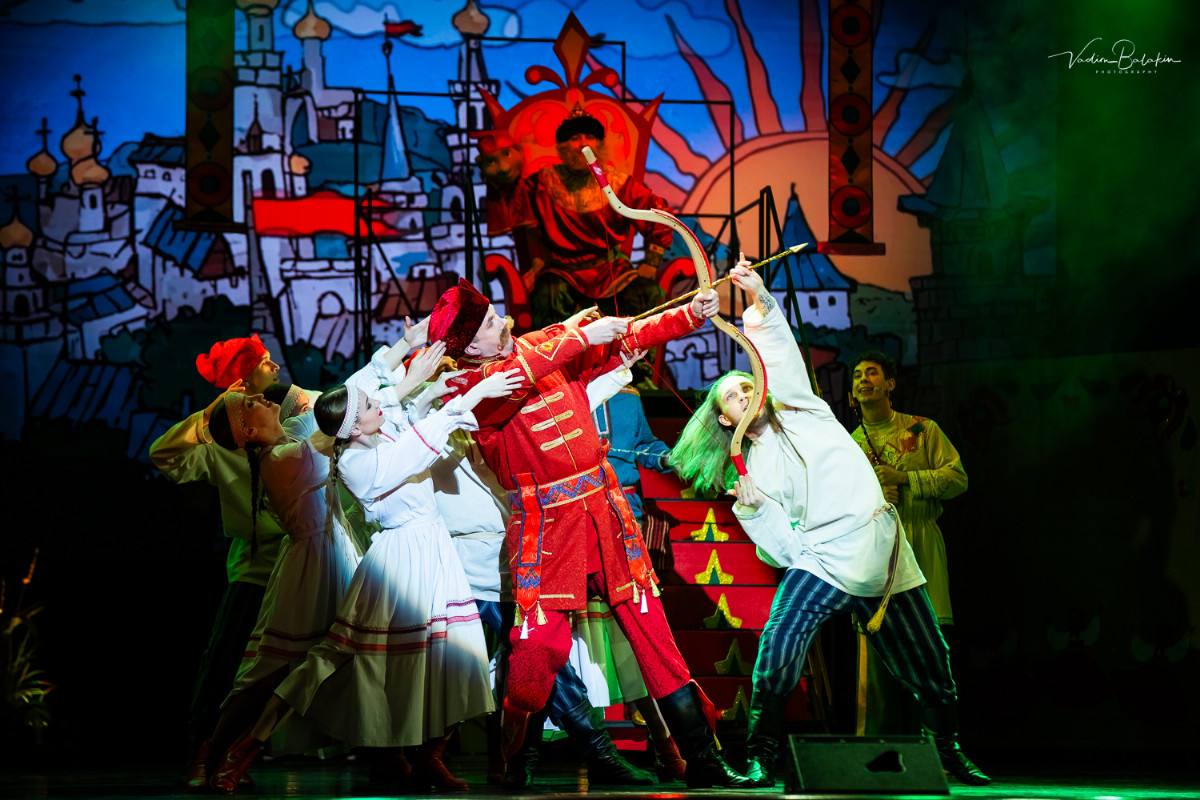 Царь отправляет своих сыновей за невестами. Те, как и полагается, «радуют» его выпечкой и рукоделием. А вот злодейства в этой истории ждать не стоит. На сцене даже Баба Яга и Кощей Бессмертный пробуждают у публики добрые чувства.