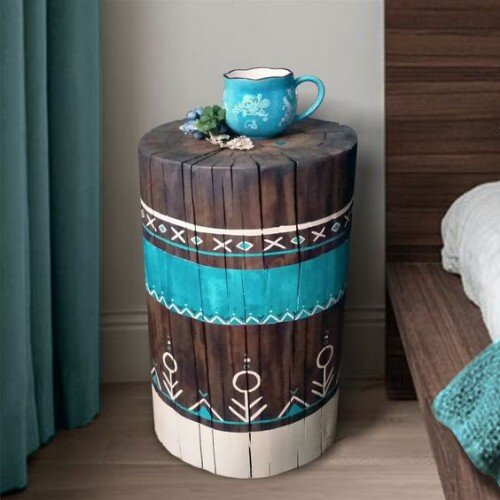 - Стол из чурбана: Превратите обычный кусок бревна в стильный прикроватный столик. Обработанный и окрашенный, он прекрасно впишется как в современный, так и в этнический интерьер.