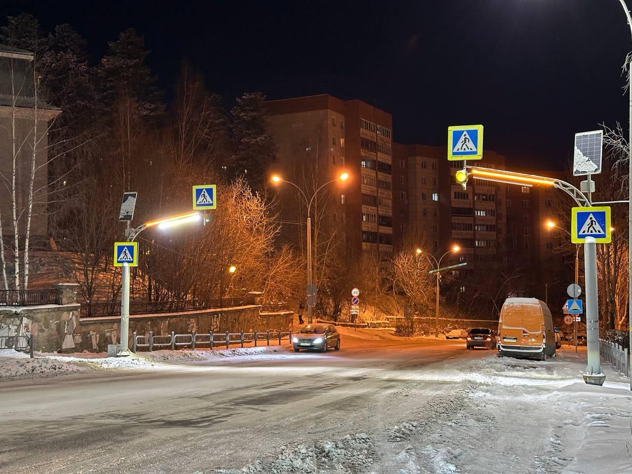 В Новоуральске на семи нерегулируемых пешеходных переходах появилась дополнительная подсветка