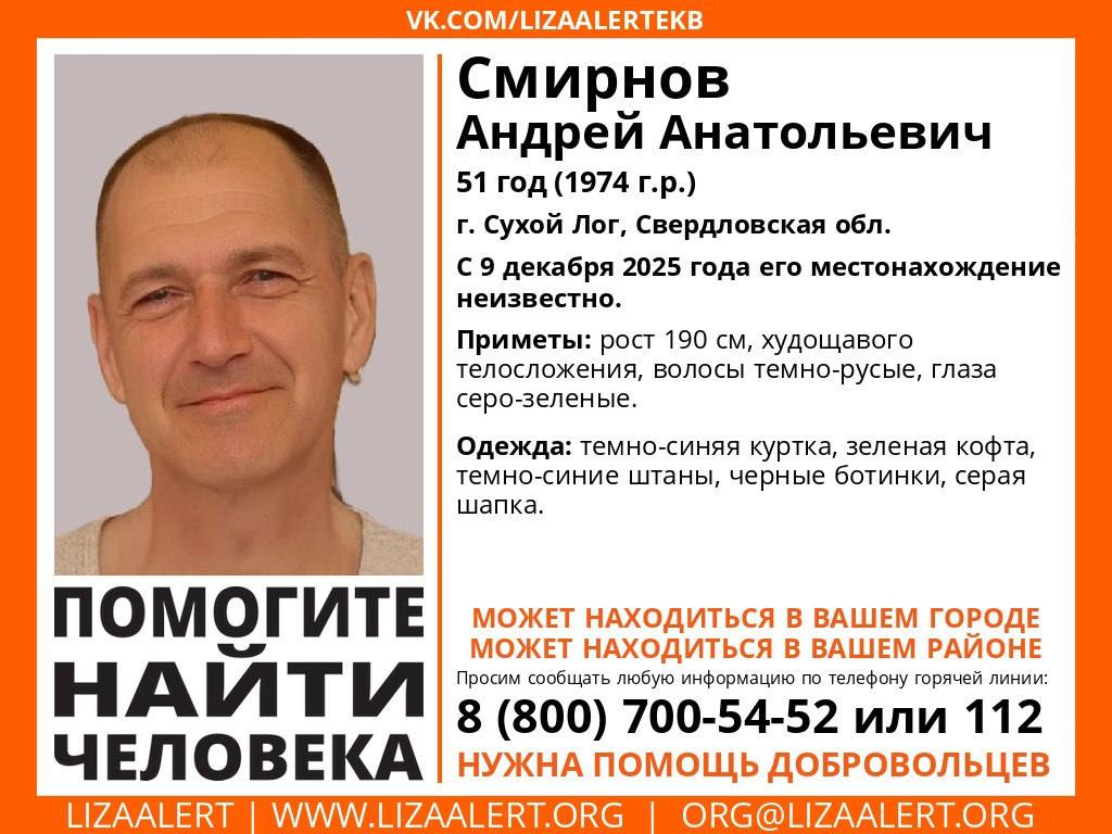 Продолжаются поиски пропавшего в Сухом Логу 51-летнего Андрея Смирнова