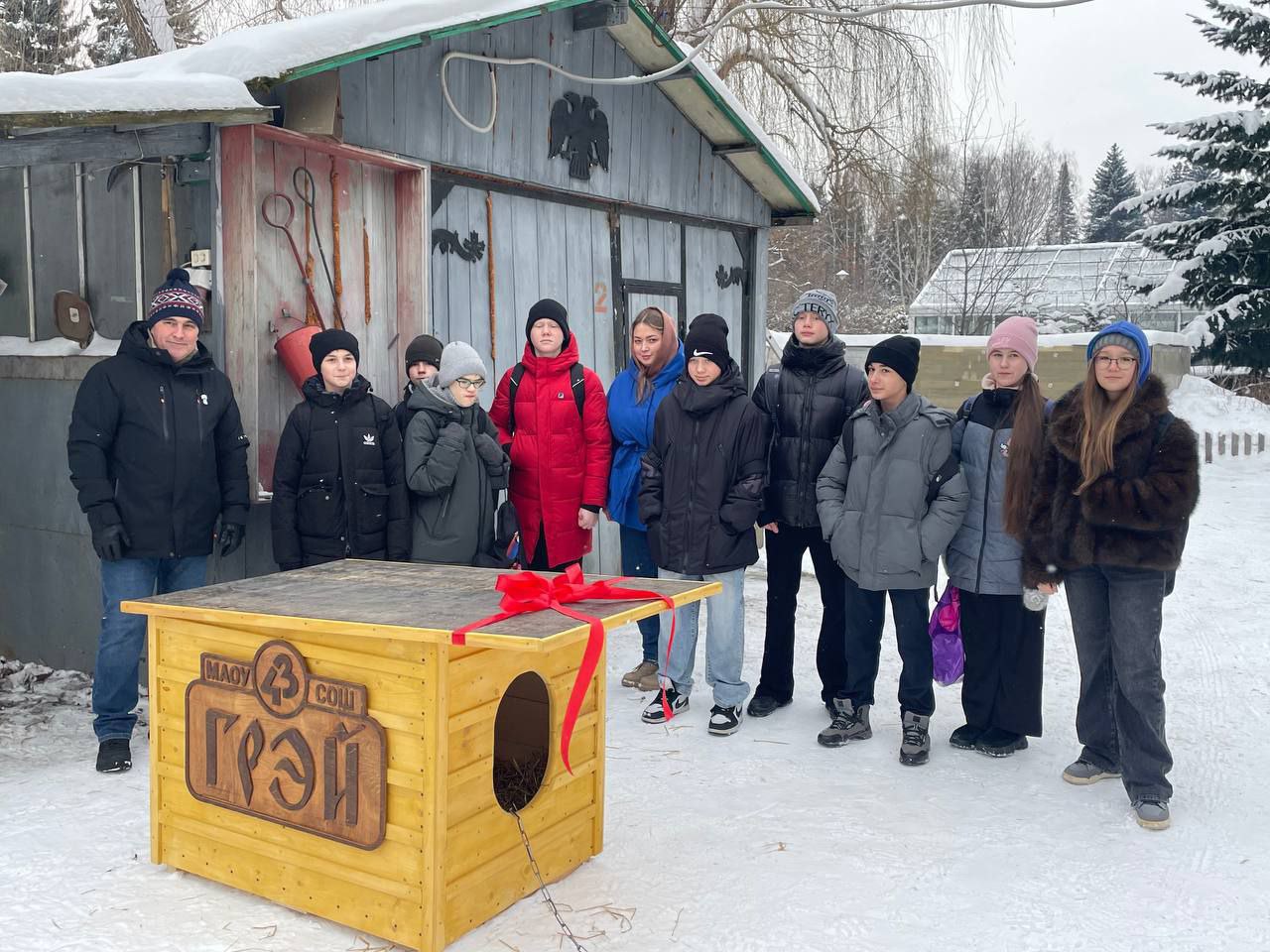 Семиклассники из школы №43 подарили песику из Дендропарка на Первомайской теплую будку. Теперь Грей точно не замерзнет зимой.