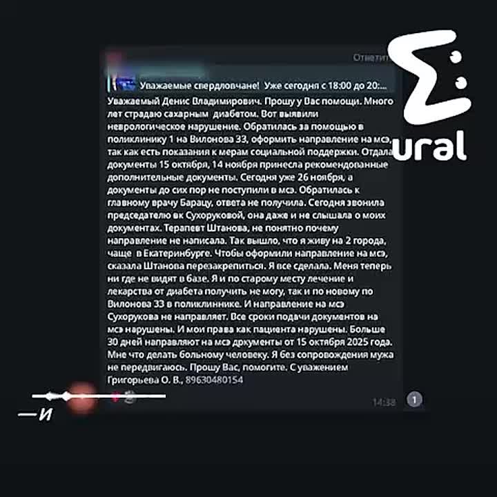 Не многим везёт так же, как Дмитрию из Краснотурьинска, вопрос которого попал на прямую линию президента. Евгения из Екатеринбурга рассказала Ural Mash, что её пожилому отцу-диабетику часто дают лишь половину нужных препаратов. Для 89-летнего мужчины это настоящая проблема, ведь бегать за лекарствами он уже не может.