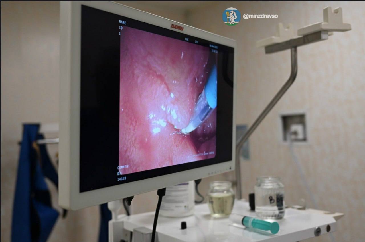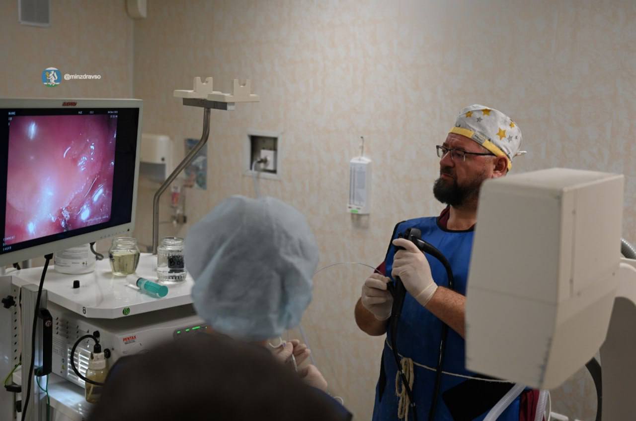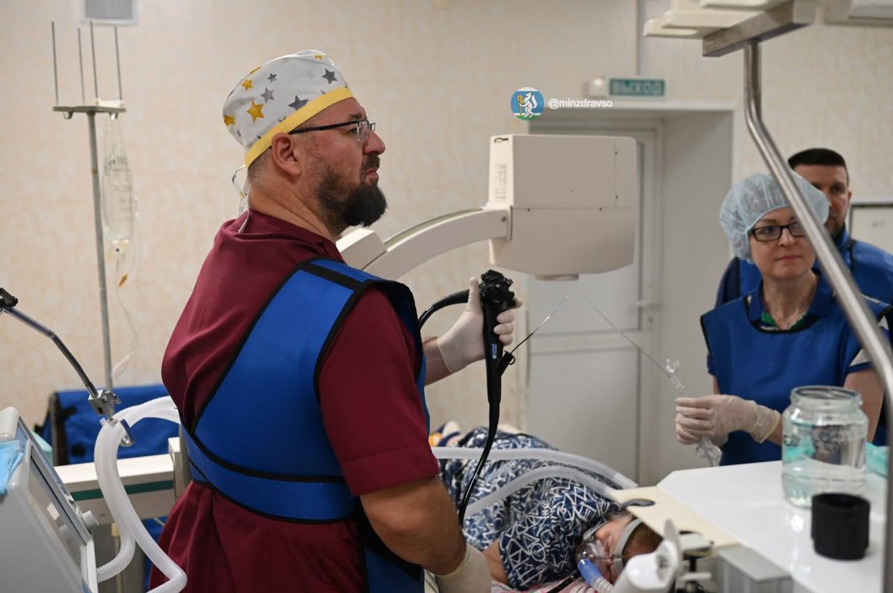 Пища застряла у 70-летней женщины на границе пищевода и желудка. Пить воду и разговаривать она практически не могла.