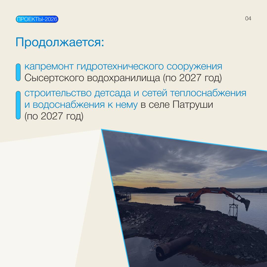 Сегодня — о проектах, которые намечены к реализации в Сысертском МО. Подробнее — в карточках.