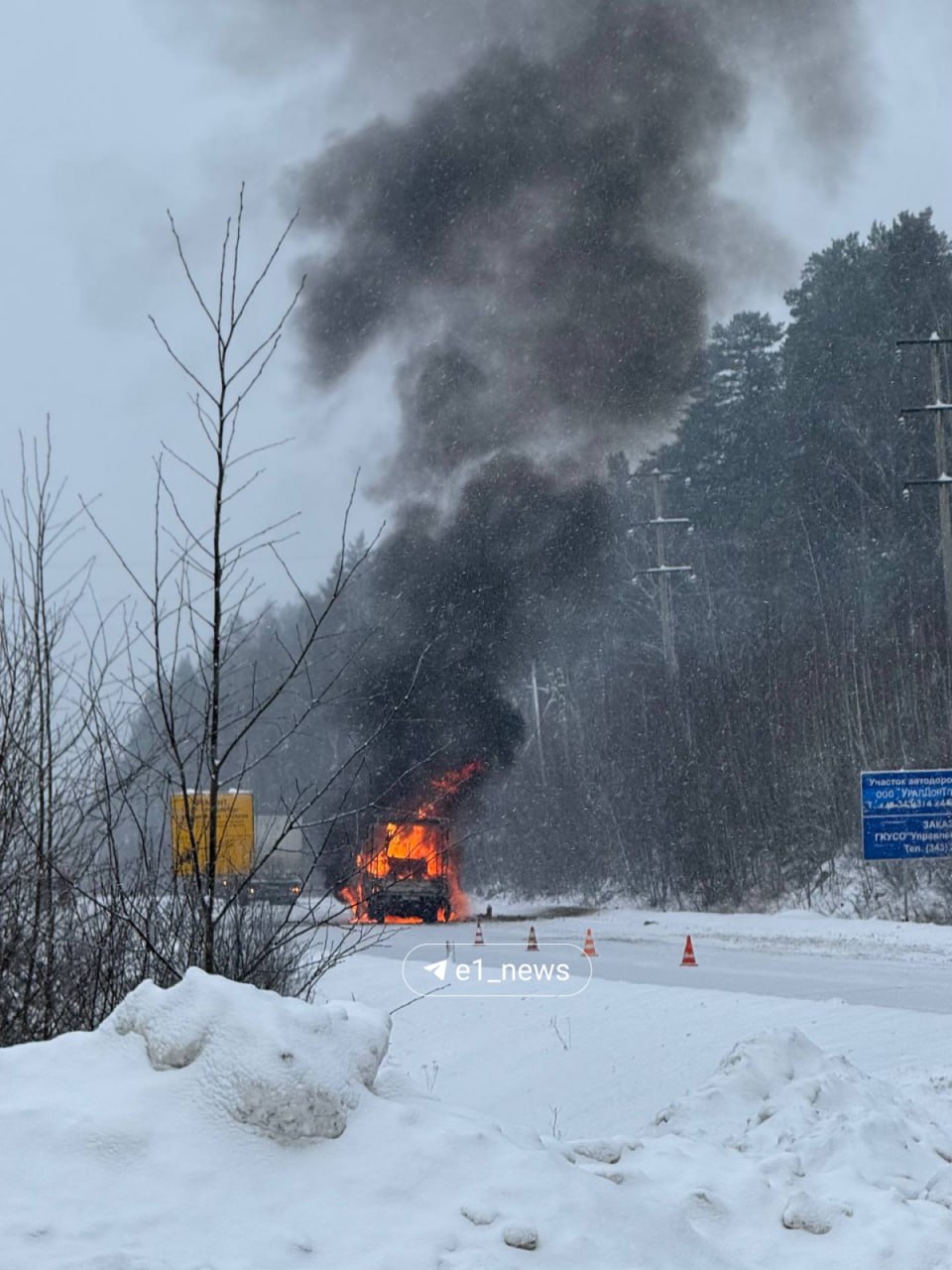 Серовский тракт встал в глухую пробку из-за горящей «Газели»