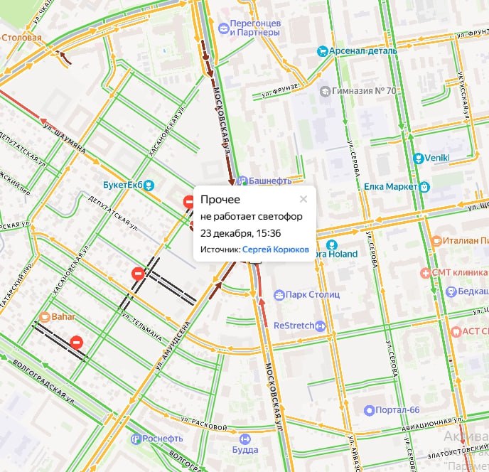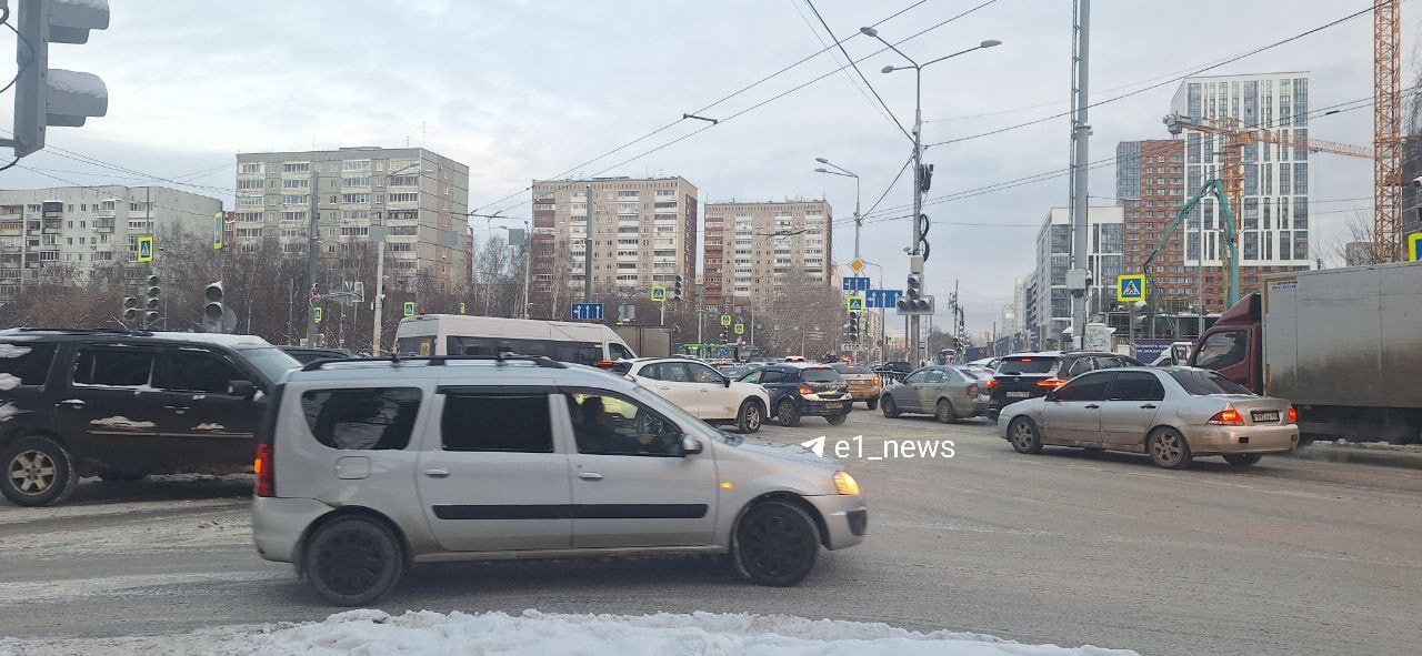 Там выключились все светофоры, сообщает Е1. Автомобилисты едут по этому участку очень медленно.