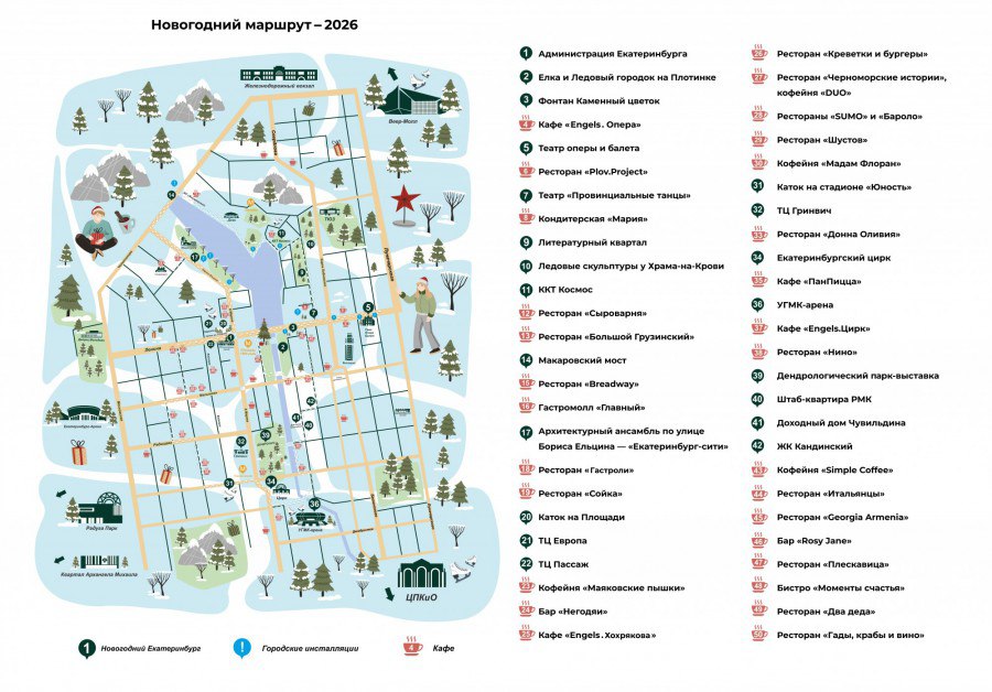 Новогодний маршрут по празднично оформленному Екатеринбургу уже готов и предлагает прогуляться уральцам по историческому центру и другим частям города. Он включает в себя 50 локаций