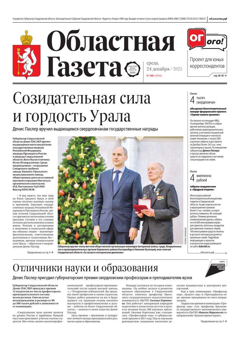 Созидательная сила и гордость Урала: Денис Паслер вручил выдающимся свердловчанам государственные награды