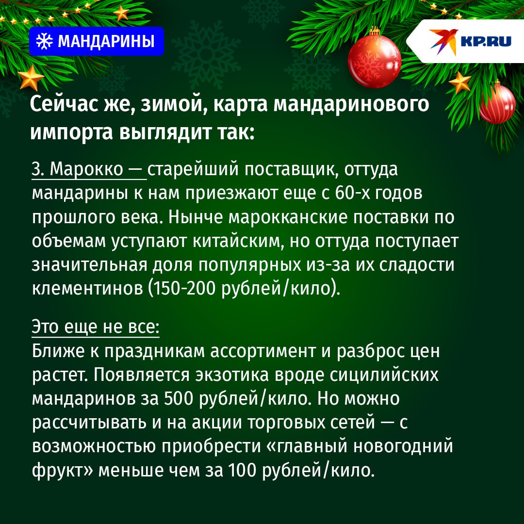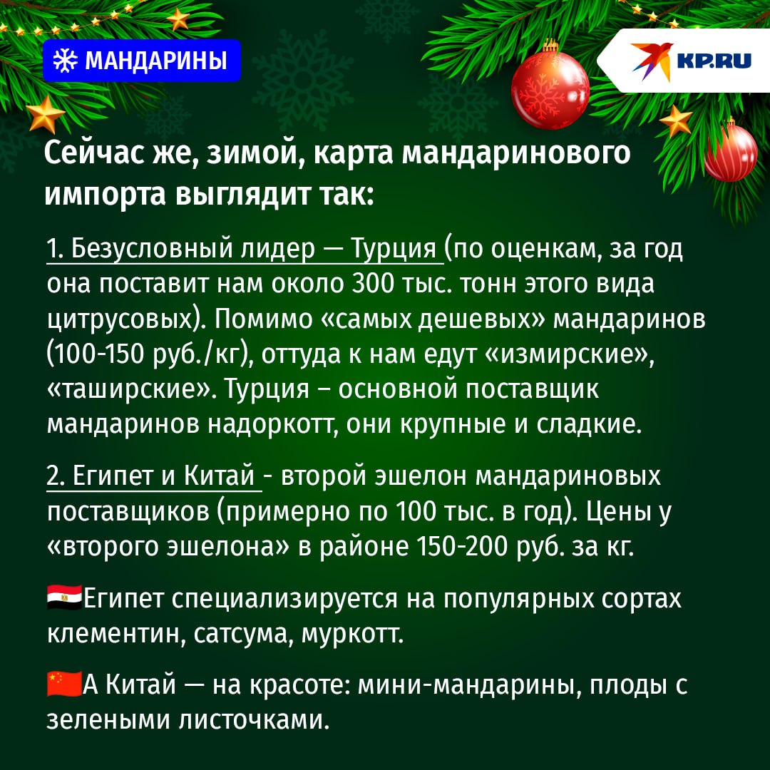 Счастье объясняется прежде всего хорошим урожаем в Турции, откуда к нам и поступает основной объем мандаринов (почти половина зимних поставок), причем именно дешевых — 100-150 руб. за кг. Увеличились также поставки из Марокко. А так любимых россиянами абхазских мандаринов уже к ноябрю было завезено на 30% больше, чем в 2024 году.