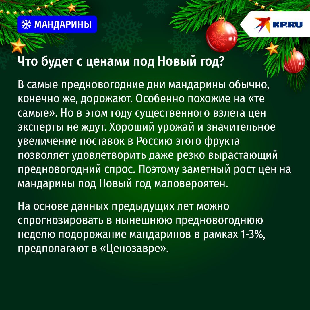Мандарины в этом сезоне дешевеют. Как сообщили «Комсомолке» в исследовательской компании Ntech, средневзвешенные цены на них в целом по стране в ноябре были на 11% ниже, чем в то же время в прошлом году. А в первую неделю декабря — аж на 20%: 147 рублей за кило против прошлогодних 184,8 рубля.