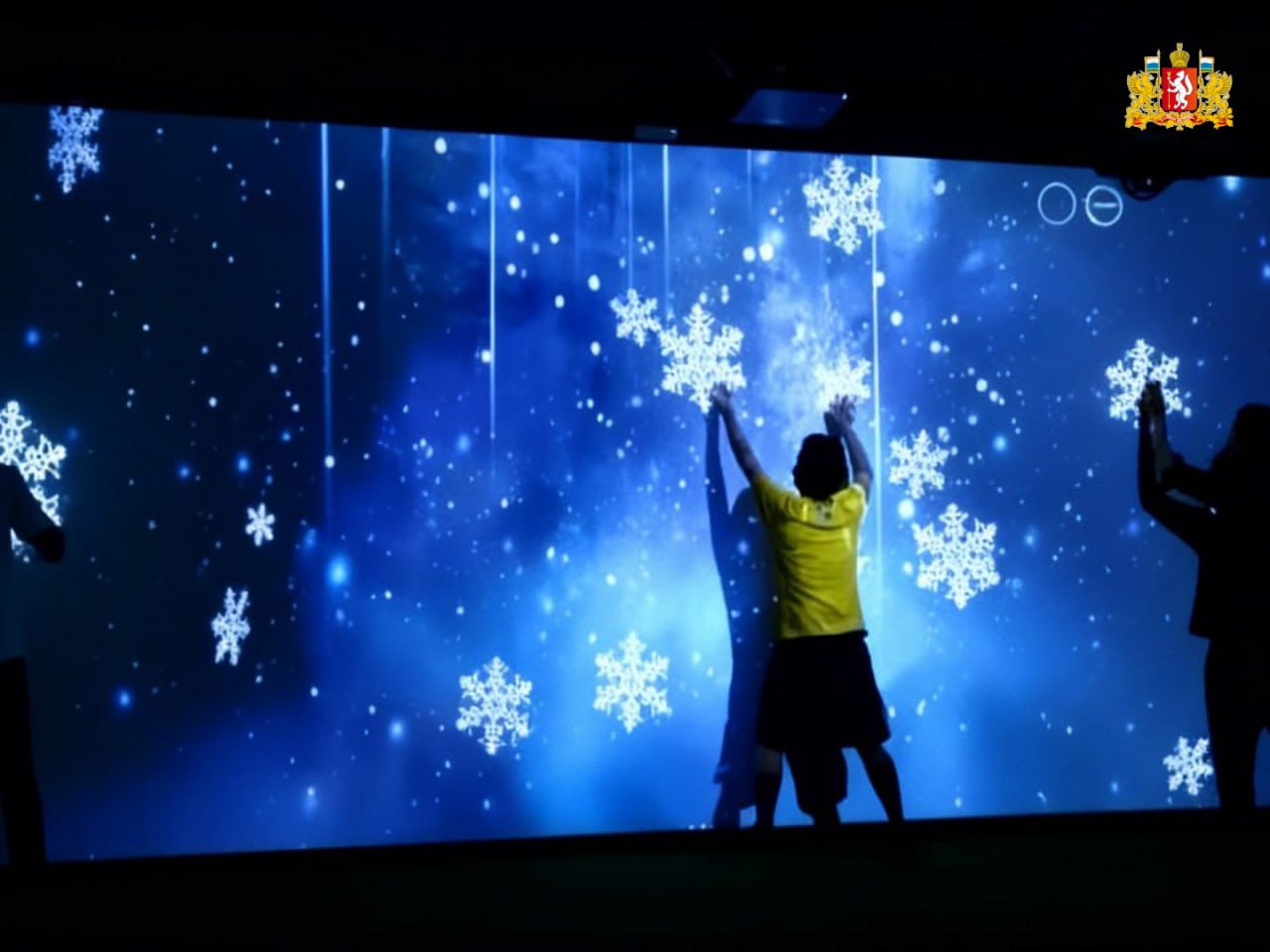 Пространство оснащено 3D-проекциями, экранами, реагирующими на движения, световыми эффектами, сенсорными играми и интерактивными элементами.