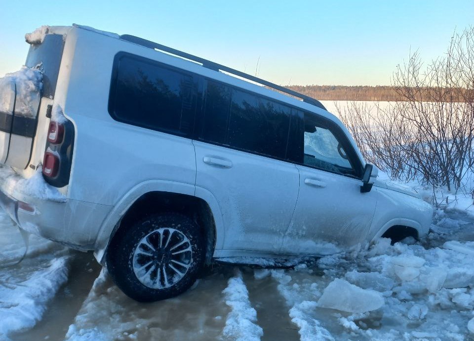 Внедорожник провалился под лёд на рыбалке в Нижнем Тагиле — спасён волонтёрами