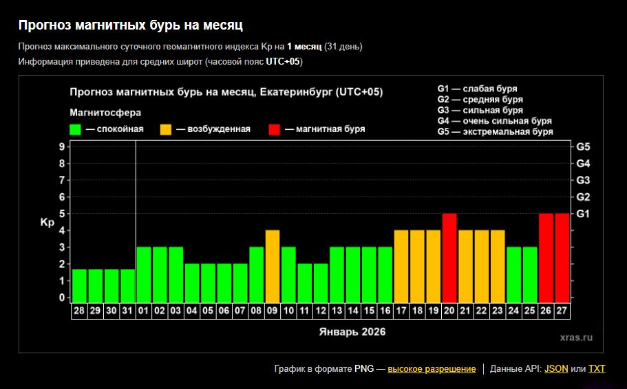 По прогнозам лаборатории солнечной астрономии ИКИ и ИСЭФ, магнитосфера будет возбуждена 20, 26 и 27 января.
