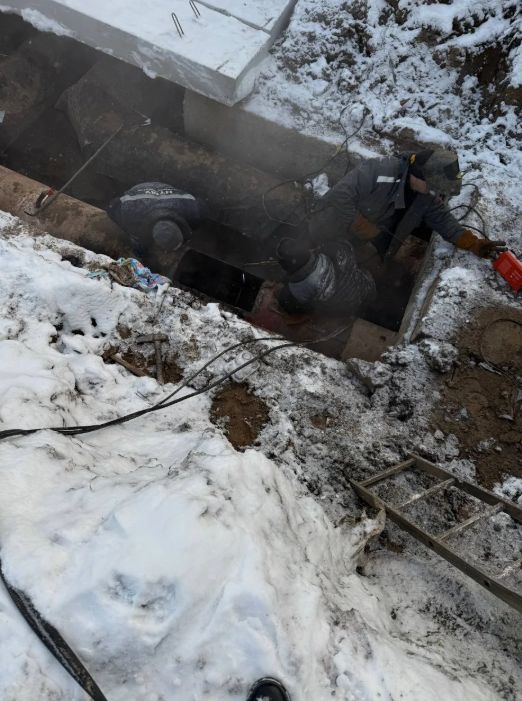 Для проведения аварийных работ на трубопроводе d-530 мм по адресу ул. Орджоникидзе, 15 задействованы 4 человека, 3 ед. техники.