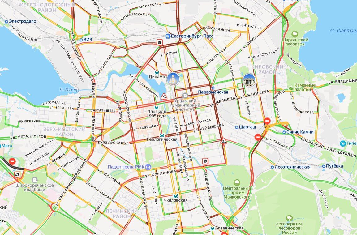 Последний понедельник декабря – день тяжелый... Екатеринбург сковали 10-балльные пробки, все дороги на картах окрашены в красный и бордовый.