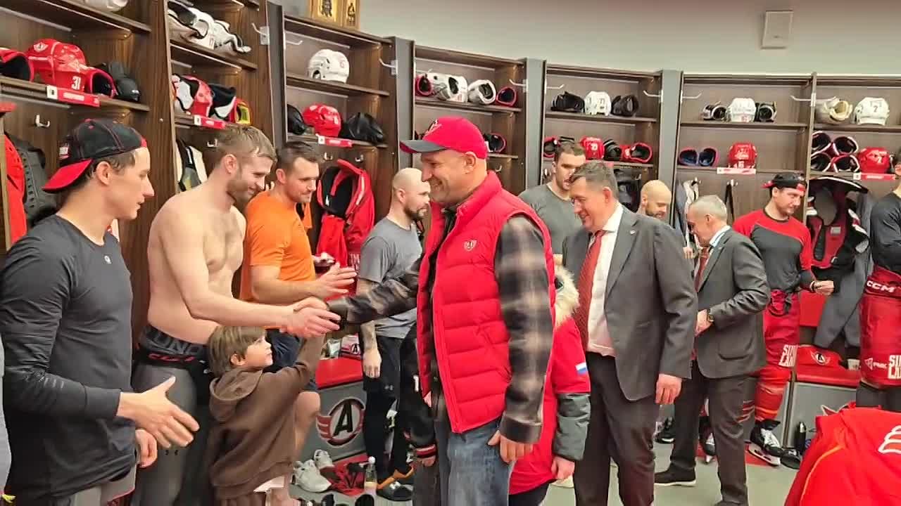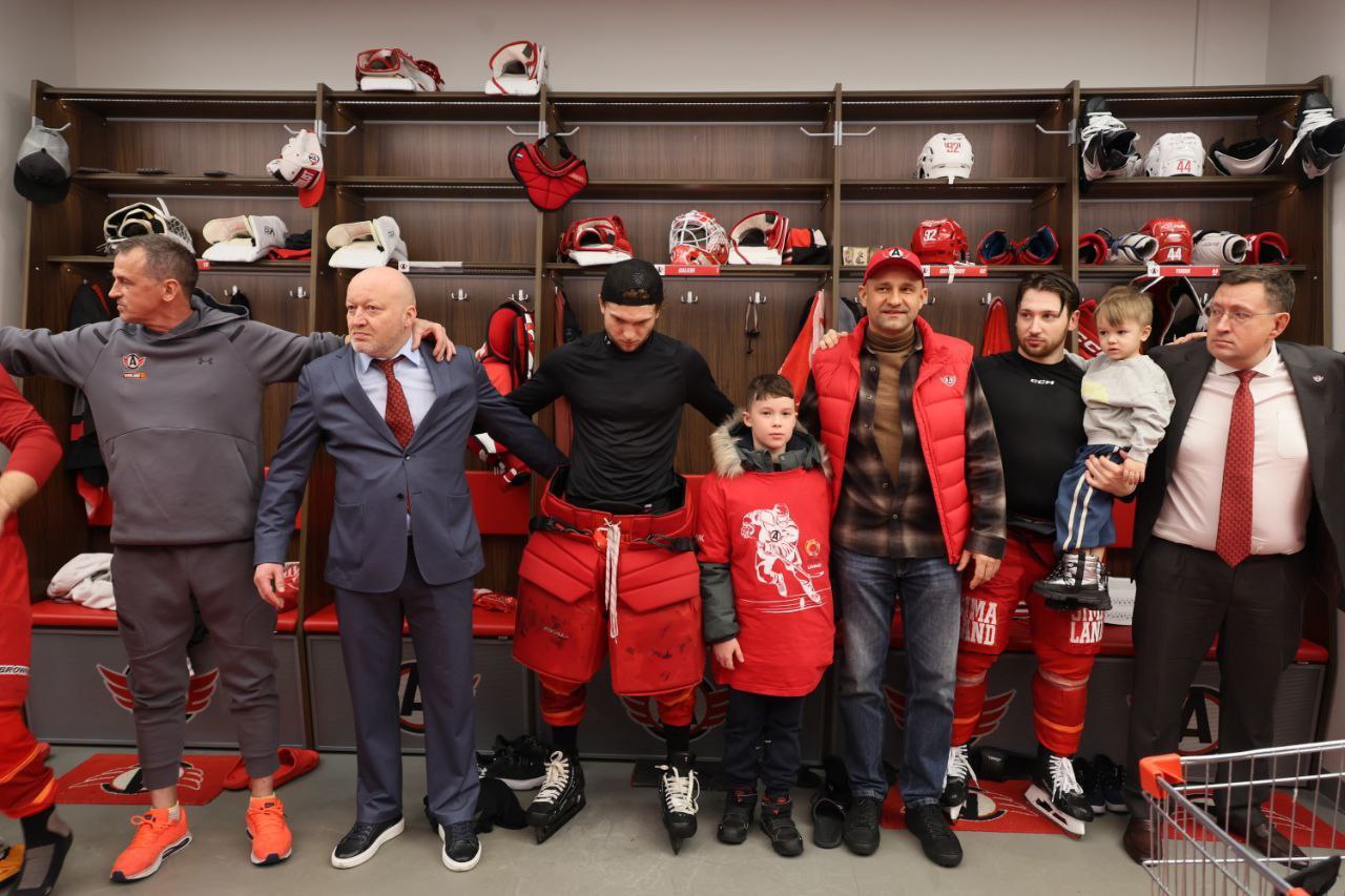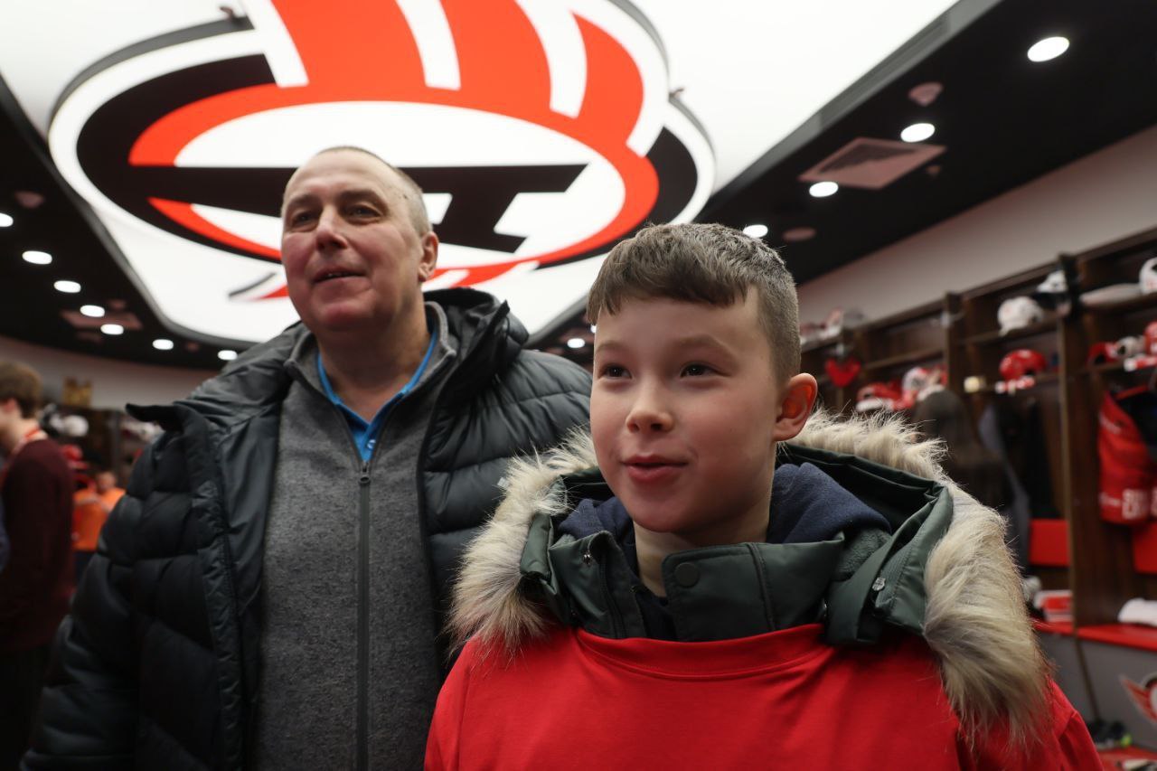 8-летний Максим из Новоуральска - преданный болельщик команды. Со старшим братом он часто смотрит игры по телевизору, но на арене впервые. 9-летний Вова из Нижней Салды играет в хоккей, болеет за ярославский "Локомотив", но и к уральской команде относится с уважением. Вместе мы не только посмотрели матч, но и познакомились с игроками в раздевалке, поздравили их с победой над "Ладой".