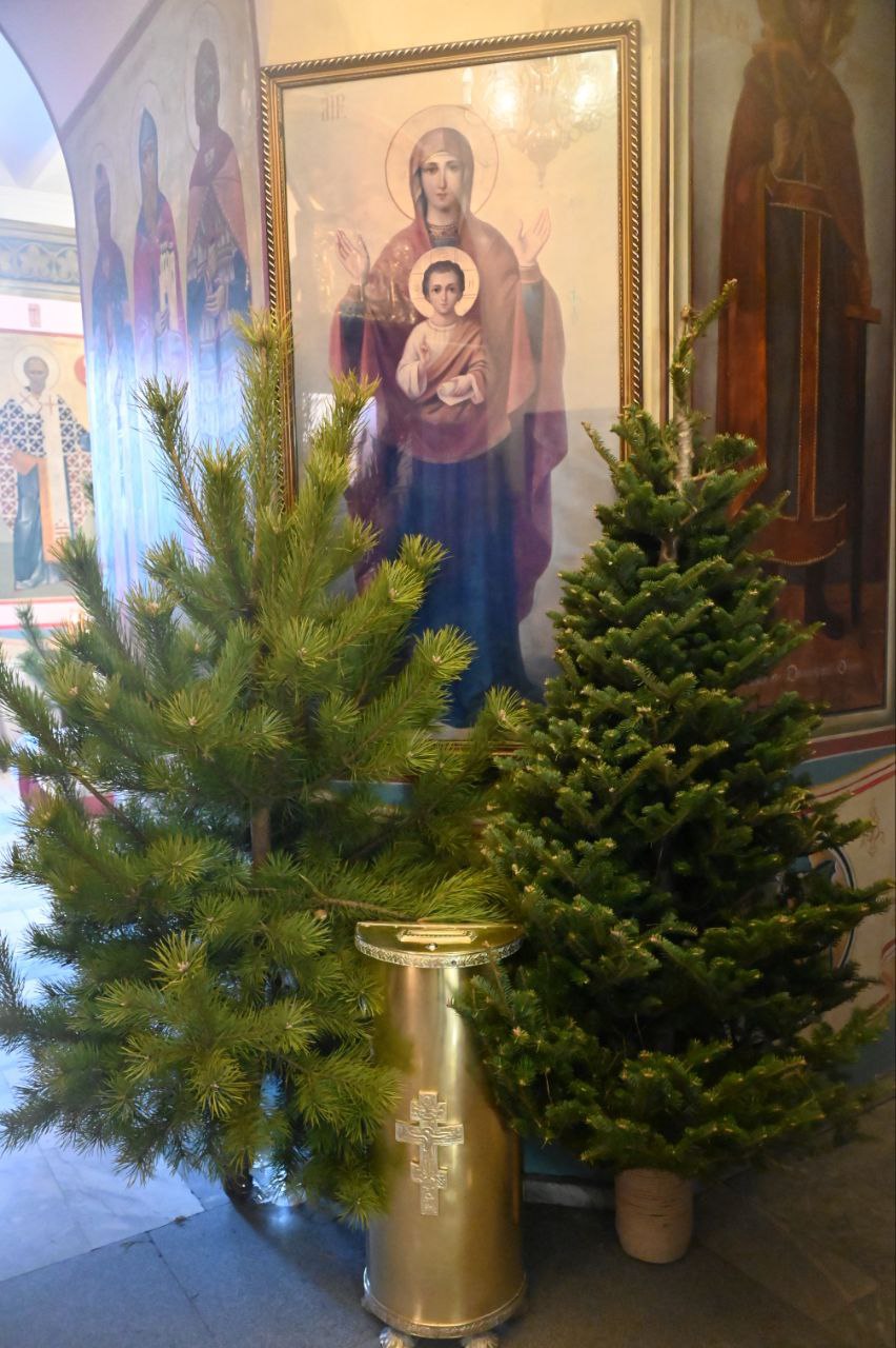 300 хвойных деревьев и около трёх кубометров пихтового лапника украсили Иоанно-Предтеченское архиерейское подворье и другие свердловские храмы Екатеринбурга.